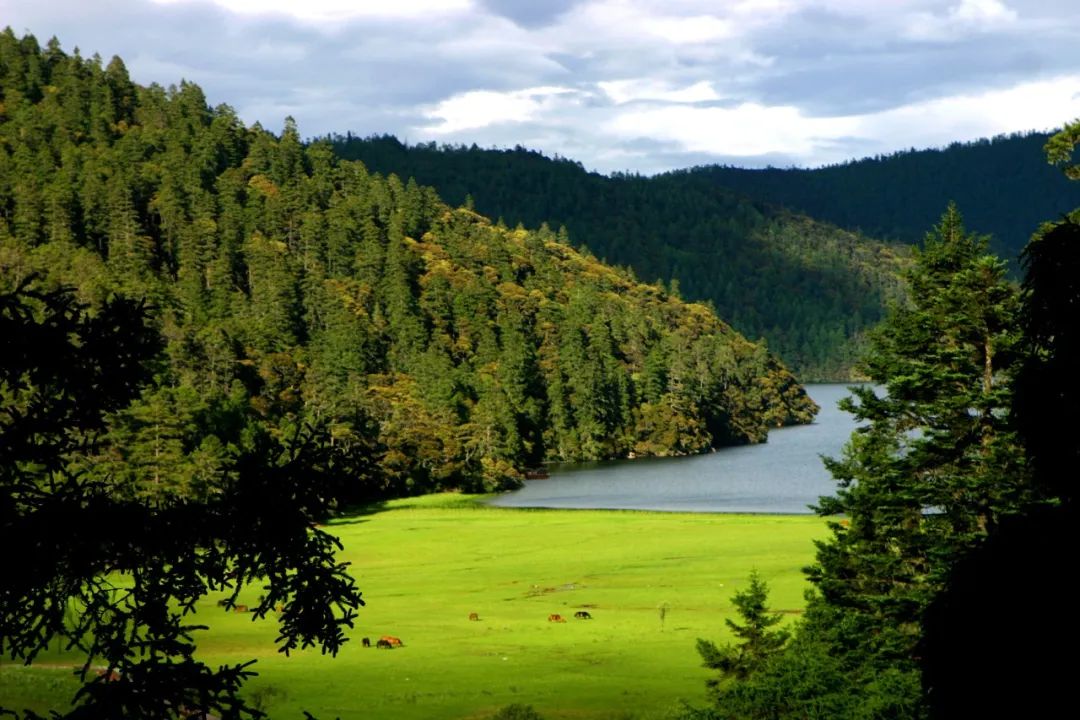 清晨出发前往普达措,乘观光车穿梭在原始森林中,高大的树木遮天蔽日,阳光透过枝叶洒下斑驳的光点。耳边是鸟鸣与水流声,呼吸里满是草木的清新。
